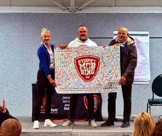 Ich danke allen an den Vorbereitungen und Durchführungen der Veranstaltung Beteiligten, vor allem Frau Papke, unserer Schulsozialarbeiterin, die nach diesem erfolgreichen Tag eigentlich „arbeitslos“ werden müsste. Denn die Resonanz und der Wille, Mobbing zu stoppen, waren sehr groß. Das zeigt auch das Plakat mit den Unterschriften der Eltern und Schülerinnen und Schüler unserer Schule, die gegen Mobbing eintreten.