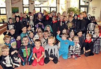 Die Herbstferien in unserem Hort standen ganz im Zeichen des gruseligen Themas Halloween. Ziel war es, die große Halloweenparty miteinander zu planen und vorzubereiten, damit sie ein absoluter Höhepunkt nach den Vorstellungen der Hort- und Vorschulkids wird. So dekorierten sie ihre Räume mit selbst gebastelten Gruselelementen, planten das Mittagessen, kauften dafür ein und kochten gemeinsam. Süßes und Deftiges für zwischendurch durfte von zu Hause mitgebracht werden. Die Halloweenparty war laut und schräg mit gruseligen Gestalten, Disco, schaurigen Spielen, Polonaise durch den Kindergarten … ein unvergessliches Erlebnis im Ferienhort!