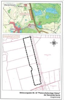 Die Gemeindevertretung der Gemeinde Sanitz hat mit Beschluss vom 25.11.2025 den Entwurf des Bebauungsplan Nr. 30 „Photovoltaikanlage Vietow“ in der Fassung vom Juli 2025 einschließlich der Begründung mit dem Umweltbericht gebilligt und zur Veröffentlichung im Internet bestimmt.