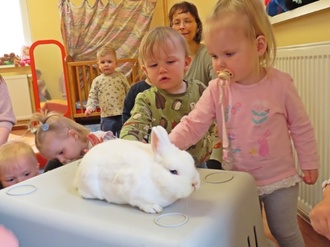 Höhepunkt im März war das Osterfest mit großer Eiersuche sowie den traditionellen Spielen, die aufgrund des schlechten Wetters in den Räumen und Fluren der Kita stattfanden.
