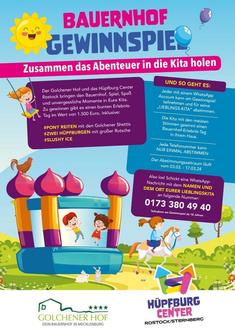Beim diesjährigen Bauernhofgewinnspiel erreichten wir den stolzen zweiten Platz. Dafür dürfen wir kostenfrei eine Riesenhüpfburg zu einem besonderen Erlebnistag in der Kita ausleihen. Dieser besondere Tag wird unser Festtag zum 50-jährigen Jubiläum unserer Kita sein. Ganz lieben Dank an alle Eltern, Freunde und Bekannte, die für uns abgestimmt haben.