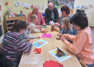 Der diesjährige Oma-Opa-Tag bereitete allen Großeltern und ihren Enkeln große Freude und zauberte ein breites Lächeln in jedes Gesicht. In den jeweiligen Gruppen gab es zunächst ein kurzes Programm der Kinder. Anschließend erkundeten alle gemeinsam die Kita und hatten Spaß beim Basteln, Spielen, Malen sowie beim Bücher anschauen. Wir bedanken uns bei den Großeltern für die zahlreichen Spenden, die anlässlich unseres runden Jubiläums für Spielgeräte und Fahrzeuge auf dem Spielplatz verwendet werden.
