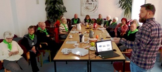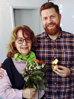 Die Plattsnacker - "Chefin" - Vorsitzende Annerose Schulz bedankt sich beim Bürgermeister herzlich für die vielen Infos zur weiteren Entwicklung von Sanitz in den kommenden Jahren.