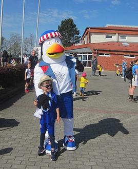 Am 13.05.23 lud der Elternrat unserer Kita zum Familiensportfest auf die Walter-Schütt-Sportanlage Sanitz ein. Bei schönstem Wetter erlangten 86 Kinder das Powerkids Diplom. Dafür maßen sie ihre Kräfte an 10 Stationen wie z.B. Todesschlucht, Sondertransport, Gummistiefellieferant, Mutprobe, Balanceakt, etc. ihre Kräfte, teilweise mit Unterstützung ihrer Eltern. Die unter 3 jährigen probierten sich an einem Bewegungsparcours sowie beim Bobby Car Rennen aus. Dafür gab es besonders schöne Medaillen. Mit einer eigenen Station sowie ihrem Maskottchen waren auch zwei Trainer, der „Bagaluten-Bande“ des Kids-Clubs, vom FC Hansa Rostock mit dabei.