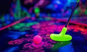 Wir fahren zum HCC und wollen Schwarzlicht-Minigolf spielen.