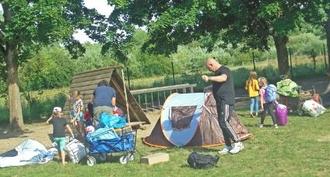 Voller Spannung warteten die Papas unserer Kita auf den Startschuss für die Anmeldung zum Papa-Kind-Camp. Wie in den vergangenen Jahren erfreut es sich größter Beliebtheit und war schnell ausgebucht. Mit Zelten, Luftmatratzen und Schlafsäcken zogen 30 Väter und 41 Kinder am Freitag, d. 30.06.23 ins „Siebenbuche Camp“ ein. Der Zeltaufbau, als Wettkampf ausgerufen, entfachte wiederum großen Feuereifer unter den Papa-Kind-Teams. Eine Schnitzeljagd, Spiele und ein Lagerfeuer rundeten den erlebnisreichen Abend ab. Beim gemeinsamen Frühstück wurden schon Pläne für das nächste Camp geschmiedet.