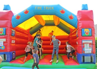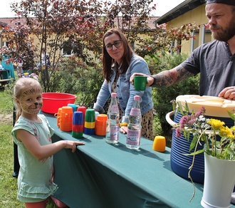 Absolut nicht vergessen wurden bei allen Festlichkeiten die Kinder unserer Kita. Sie durften sich an zwei Tagen auf insgesamt drei Hüpfburgen austoben. An vielen Stationen wie z.B. Tischtennis, Fußball, Schubkarrenrennen, Dosen abwerfen oder Entenangeln probierten sie sich gemeinsam mit ihren Eltern aus. Getränke, Kuchen und Mittagessen gab es an diesem Tag für alle Familien kostenfrei.