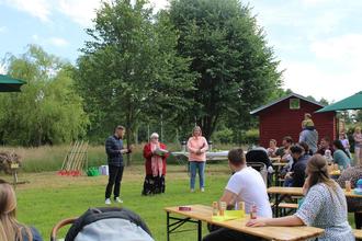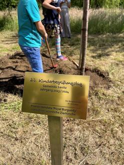 Das Standesamt hatte über 40 Neugeborene gemeldet, von denen sich 20 Eltern anmeldeten. Lernt man doch hier die zukünftigen Kita- und Schulfreunde kennen. Über eine lange Zeit die konstante Zahl von jährlich mehr als 40 Geburten in der Gemeinde zeigt auch die Richtigkeit, die Investitionen in Richtung Bildungseinrichtungen weiter zu beschleunigen. Bei strahlendem Sonnenschein nahmen alle Gäste die liebevoll durch die fleißigen Mitarbeiterinnen der Gemeinde und den Bauhof vorbereitete Festwiese Reppelin in Besitz. Die Übergabe der Urkunden ging schnell, auch wenn der Bart des Bürgermeisters für einige kleine Leute ein besonderes Interesse hervorrief. In Tradition erfolgte dann die Pflanzaktion, diesmal die „rotlaubige japanische Zierkirsche“ - so steht es auf dem Schildchen für die 2023 und 2024 geborenen kleinen Einwohner unserer Gemeinde. Die Vatis nahmen die Schaufeln, die kleinen Schippen waren so begehrt bei den Geschwisterkindern, das sich „Warteschlangen“ bildeten. Bei Kaffee, Kuchen und Säften die Gespräche zwischen den Eltern, Gemeindevertretern, Bürgermeister und Mitarbeiterinnen der Gemeinde. Frau Taube, Mitglied des Sozialausschusses der Gemeinde, war begeistert von dem Spielplatz und nicht nur sie fand den Ort unserer Feier gut gewählt. Schaukeln, Wippe und die umringte Rutsche am Klettergerüst zeigten uns, wie gut dieser Platz ausgesucht war. Nochmals meinen Dank an alle, die dieses Fest vorbereitet und zum Gelingen beigetragen haben!