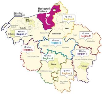 Das rubi-Verkehrsgebiet erstreckt sich über den gesamten Landkreis Rostock mit Ausnahme der Stadtgebiete Rostock, Güstrow und Bad Doberan. Hierbei ist der Landkreis in die folgenden Rufbus-Regionen unterteilt: