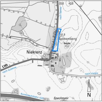 | ▪ | im Süden durch die vorhandene Bebauung an der Landesstraße L191 |