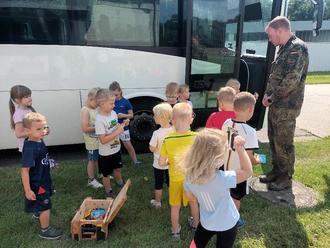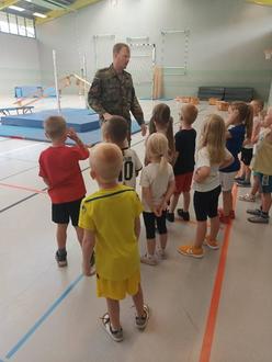 Am 15.Juli 2024 wurden wir mit einem großen Bus von der Bundeswehr abgeholt und in die Kaserne gebracht. Dort nahm uns Feldwebel Alexander in Empfang gleich zu Beginn wurde uns ein Teil des Fuhrparks vorgestellt. Nach einer erfrischenden Stärkung durften wir in der großen Turnhalle unser Können beweisen. Am Ende unseres Besuches ging es auf Schatzsuche. Aber es war echt schwierig, die getarnte Kiste (gefüllt mit kleinen Überraschungen) zu finden.