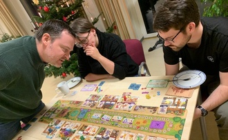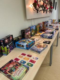 An mehreren Tischgruppen sitzen die Spieler, jung und alt, Familien und Freundesgruppen – viele haben sich hier erst kennengelernt. Alle freuen sich auf die gemütliche Atmosphäre und ergänzen das gemeinschaftliche Buffet mit selbstgemachtem Kuchen und Snacks. Immer wieder durchmischen sich die Spielergruppen nach einer beendeten Partie, wenn das nächste Brettspiel ausgewählt wird. Häufig sehen wir neue Gesichter und stets findet sich eine geeignete Gruppe für den eigenen Geschmack.