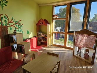 Der liebevoll gestaltete Raum, bietet den kleinen Leseratten eine bunte Auswahl an Bilderbüchern, Erstlesegeschichten und Sachbüchern, die speziell auf das Alter der Kinder zugeschnitten sind.
