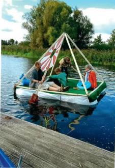 Sehr fleißig waren 10 Frauen von uns. Wir häkelten ein großes Segel für eine gemeinsame Kunstaktion mit der Künstlerin Susanne Gabler und drei weiteren Mitstreitern aus Wismar. Ein Floss sollte entstehen und auf der Trebel segeln.
