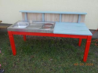 … und wir genießen die ersten warmen Sonnenstrahlen, hören die Vögel zwitschern und konnten bereits erste Käfer entdecken. Am Montag den 04.03.2024 wartete eine Überraschung auf unserem Hof. Die Kinder staunten nicht schlecht, als sie auf unserem Kita-Spielplatz eine Matscheküche zum Spielen vorgefunden haben. Nun können die Kinder nach Herzenslust an der frischen Luft ´kochen´, ´backen´oder ganz einfach mit Wasser und Sand experimentieren. Ein großes Dankeschön geht an unsere liebe Kollegin Frau Rogge, die gemeinsam mit ihrem Mann die Küche für unsere Kinder gebaut hat und jetzt warten wir nur noch auf Töpfe, Pfannen und andere Küchenutensilien.;-)
