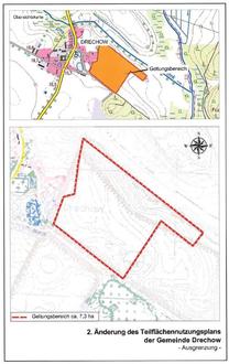 Die Gemeindevertretung der Gemeinde Drechow hat mit Beschluss vom 03.02.2026 den Entwurf der 2. Anderung des Teilflächennutzungsplans in der Fassung vom November 2025 einschließlich der Begründung mit dem Umweltbericht gebilligt und zur Veröffentlichung bestimmt.