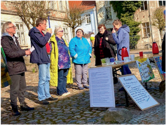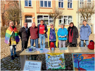Mit einer Mahnwache im Rahmen der internationalen UN-Wochen gegen Rassismus vor dem Rathaus, mit Aufklärungs-Infos, anregenden Gesprächen und Einladungen zum interkulturellen Café des Tribseeser Arbeitskreises Asyl setzten seine MitarbeiterInnen am 21. März wieder ein Zeichen für Vielfalt, Toleranz, Respekt und Menschenwürde.