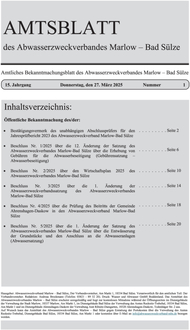 Übersicht des Amtsblattes Abwasserzweckverband Marlow-Bad Sülze
