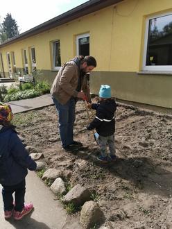 Eigene Erdbeeren ernten, den Erbsen beim Wachsen zuschauen, eine große Blumenwiese anlegen - das verwirklichen die Kinder der Salinen- und Dahlienkinder mit unserem neuen Kollegen Max Grabow und unserer Kollegin Heidrun Ziegler.