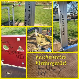 Im Gegensatz zu diesem super Engagement aller Beteiligter muss ich nun mein Unverständnis, welches Sie sicher teilen, zum Ausdruck bringen, für das was wir während und nach des Subbotniks erleben mussten. Schon die Schmierereien, die durch Helfer vom Klettergerüst gewischt worden waren, sind nicht nachvollziehbar. Wer geht mit einem Filzstift bzw. einem schwarzen Edding auf dem Spielplatz und verewigt sich dort? Ist denn der Respekt vor gemeinschaftlichem Eigentum nicht mehr vorhanden? Haben Eltern denn keinen Einfluss mehr auf ihre Kinder? Glücklicherweise hat der Reiniger seinen Dienst getan.