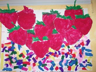 Die Erdbeerzeit hat begonnen und das haben auch unsere Kitakinder festgestellt. Sie haben im Morgenkreis von den ersten selbstgepflückten Erdbeeren erzählt. Auf dem Frühstücksbuffet konnten die Kinder auch große, rote Erdbeeren in einer Schale entdecken. Unsere Küche in Bentwisch lieferte uns jetzt schon ein paar Male leckere Erdbeeren. Dies alles haben wir Erzieher zum Anlaß genommen, das Thema in den Gruppen aufzugreifen. In der Vorschulgruppe haben wir Erdbeeren gemalt, ausgeschnitten und ein großes Erdbeerkörbchen gebastelt. Dort fanden dann alle Exponate ihren Platz.