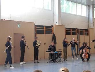 Es war schon etwas ganz Außergewöhnliches, als am 13.05.2025 ein junges Team der „Baltic Sea Philharmonic“ ein kleines musikalisches Konzert für unsere Schülerinnen und Schüler der Klassen 1 - 4 präsentierte.