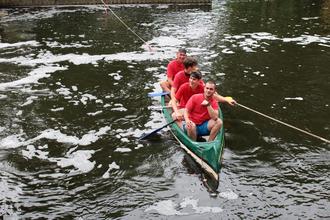 Das Wetter spielte diesmal mit und bescherte den Teilnehmern und Gästen zum ersten Mal einen trockenen Festtag. Bereits am frühen Nachmittag herrschte eine fröhliche Atmosphäre, als die Teams ihre Kanus ins Wasser ließen und die ersten Rennen starteten.