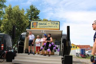 Auch die Hansetour Sonnenschein machte während unseres Hafenfestes in Bad Sülze halt. In diesem Rahmen konnten wir unsere gesammelte Spende persönlich durch Triton und Ursula, alias Thomas und Jana Bork, übergeben. Dank der großzügigen Spenden und Tombolaeinnahmen bei den Veranstaltungen im vergangenen Jahr konnten wir eine beeindruckende Spendensumme von 575,00 € überreichen – die höchste Spende, die wir in all den Jahren der Hansetour übergeben konnten. Dieser stolze Betrag wird zweifellos dazu beitragen, das Engagement der Hansetour Sonnenschein für wohltätige Zwecke weiter zu unterstützen und die großartige Arbeit des Teams „Mike Möwenherz“ voranzutreiben.