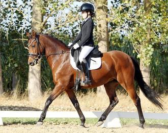 Zu den aussichtsreichen Dressurreiterinnen bei den Ponytagen in Wöpkendorf gehört die 14-jährige Carlotta Plambeck aus Poseritz mit ih-rem Pony Queeny.