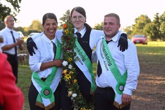 Nun trotzte nur noch das Kreuz der Tonne den Keulen. Angefeuert von den Zuschauern gaben die Reiterinnen und Reiter nochmal alles. Und dann stand es fest, das letzte Stück Holz wurde von Sophie Strotebeck auf ihrer Friesenstute Zilver abgeschlagen. Völlig überwältigt konnte sie ihr Glück kaum fassen! Sophie Strotebeck ist schon lange Fan vom Tonnenabschlagen, aber mitgeritten war sie bisher noch nie: "Ich wollte nur mal mitreiten, mal schauen, ob und wie mein Pferd das mitmacht. Ich kann es noch gar nicht realisieren.", so die frisch gebackene Tonnenkönigin von Dettmannsdorf.