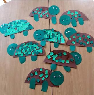 Bei uns entstanden in den letzten Wochen viele neue Tierchen. Passend zu der Geschichte vom mutigen Marienkäfer Manni haben wir Mutmachkäfer gebastelt. Außerdem haben die Kinder viel über Land- und Wasserschildkröten gelernt und danach ihre eigenen „Schildis“ gestaltet. So konnten sie neue und vor allem pflegeleichte Haustiere mit nach Hause nehmen.