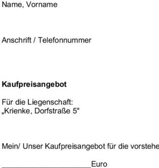 Dafür kann das beigefügt Muster eines Kaufpreisangebotes verwendet werden.
