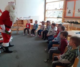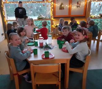 Am 14.12.23 war unser Weihnachtsfest in der Kita. Alle Kindergartenkinder versammelten sich in unserem geschmückten Weihnachtsraum. Vor dem gemeinsamen Frühstück, welches unsere Eltern liebevoll vorbereiteten, wurden zusammen Weihnachtslieder gesungen. Danach konnte sich jedes Kind am reichhaltigen Weihnachtsbuffet seinen Teller füllen. Nach dem Frühstück warteten die Kinder auf den Weihnachtsmann. Wie jedes Jahr begann er bei den Kleinsten im Haus. Er hatte für jedes Kind neue Spielsachen für die Kita und ein kleines Geschenk für jedes Kind mitgebracht. Natürlich durfte sich jedes Kind auf seinen Schoß setzten und ihm ein Lied oder Gedicht vortragen. Vor den Feiertagen war noch genug Zeit mit den neuen Spielen zu spielen.