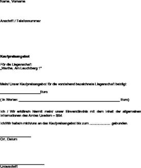 Dafür kann das beigefügt Muster eines Kaufpreisangebotes verwendet werden.