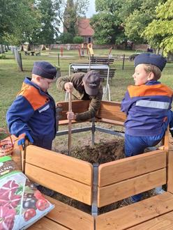 Mit großem Eifer griffen die Jugendlichen in Mellenthin selbst zum Spaten, setzten den Baum fachgerecht in die Erde und sorgten für eine erste kräftige Bewässerung. Unterstützt wurden sie dabei von aktiven Feuerwehrmitgliedern.
