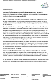 Dieses Webseitenförderprogramm wurde vor einigen Jahren bereits ins Leben gerufen und konnte seitdem u.a. viele Kommunen, öffentliche sowie soziale Einrichtungen, Vereine und kleinere Unternehmen zu einer neuen Webpräsenz verhelfen. Aktuell stehen im Rahmen des Förderprogramms „Mecklenburg-Vorpommern vernetzt“ Förderplätze mit dem Schwerpunkt Barrierefreiheit zur Verfügung. „Ich bin sehr zufrieden mit meiner Homepage und der Zusammenarbeit von Anfang bis Ende. Der Kontakt per Mail und telefonisch war immer professionell, verlässlich und wertschätzend. All meine Wünsche wurden umgesetzt. Mir wurde es damals empfohlen und ich würde es auch immer weiterempfehlen“, berichtet Yvonne Branitz-Hoffmann, Wandelfeld. Bei der Erstellung der Webseite werden selbstverständlich neben den Anforderungen an die Barrierefreiheit auch die geltenden Datenschutzrichtlinien berücksichtigt und umgesetzt. Nach Projektabschluss können z.B. Texte und Bilder, wichtige Mitteilungen, kommende Veranstaltungen und Formulare selbstständig auf der Webseite mittels eines bedienerfreundlichen, deutschsprachigen Redaktionssystems ergänzt werden – Programmiererkenntnisse sind dafür nicht erforderlich. Sollte es dennoch Fragen geben, können sich die Projektpartner auch nach Projektabschluss noch bis mindestens 2035 an den kostenfreien telefonischen Webseiten-Support der Azubi-Projekte wenden.
