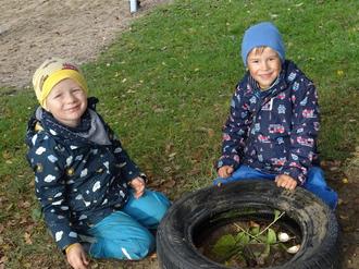Jeden Tag wird es nun kälter. Trotzdem gibt es bei uns im Kindergartengarten viel zu entdecken. Für unsere Vögel haben wir Walnüsse gesammelt. Jeden Tag knacken wir einige. Dann besuchen uns Kohlmeise, Blaumeise, Kleiber und Amsel. Es macht Spaß, die Vögel beim Fressen zu beobachten. Sogar ein Specht traute sich zu uns. Ganz leise waren wir da. Er pickte von den Nüssen. Aber wir wollten sein lautes Klopfen hören. Am Nachmittag beim Spielen hörten wir den Specht endlich klopfen. Sicher versuchte er, einen Wurm aus unseren Bäumen herauszuklopfen.
