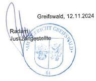 | Freitag, 17.01.2025 | 09:30 Uhr | Sitzungssaal 011 | Amtsgericht Greifswald, Domstraße 7A, 17489 Greifswald |