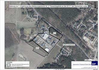 Die 1. Ergänzung des Bebauungsplanes Nr. 2 „Gewerbegebiet an der B 111“ der Gemeinde Loddin beinhaltet zwei Ergänzungsbereiche. Beide Ergänzungsbereiche befinden sich nordwestlich des Seebades Loddin und grenzen direkt an das bestehende Gewerbegebiet des Bebauungsplanes Nr. 2 „Gewerbegebiet an der B 111“ der Gemeinde Loddin an.
