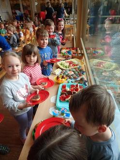Endlich war er da, der Tag der großen Kita- Osterfeier am Mittwoch, den 29.03.23. Alle Kinder versammelten sich auf dem großen Flur zum gemeinsamen Frühstück an der langen Ostertafel. Zu Beginn sangen wir alle das Lied „Osterhas mit seiner Frau“. Anschließend wurde das leckere und gesunde Frühstücksbuffet eröffnet. Die Kinder freuten sich über die große Auswahl und die Gemeinsamkeit. Vielen Dank an alle Eltern, die zum wunderschönen Buffet beigetragen haben.