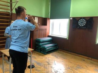 10 Schüler aus unterschiedliche Jahrgangsstufen der Schule am Stettiner Haff kamen dieser Einladung gerne nach und fuhren gemeinsam mit 3 Lehrkräften nach Swinemünde. Nach einer herzlichen Begrüßung startete das Programm und die Schüler konnten an verschiedenen Stationen ihre sportlichen Fähigkeiten unter Beweis stellen. Manch ungewohnte Übung war dabei, so wie beispielsweise das Einfangen von Tischtennisbällen, die aus einer Maschine in die Luft geschossen wurden oder das Werfen von Dartpfeilen, während man auf einem Wackelkissen balanciert. Zum Schluss konnten sich alle Teilnehmer mit Pfannkuchen und Getränken stärken und miteinander tanzen.