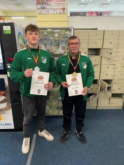 Nils ist in der Altersklasse Jugend A gestartet und in der Gewichtsklasse bis 83 kg. Er hatte im ersten Versuch 80 kg gedrückt, im zweiten 85 kg und im dritten Versuch 90 kg. Nils ist Vizemeister geworden mit seiner gedrückten Leistung. Dieter ist in der der Altersklasse 4 gestartet und auch in der Gewichtsklasse bis 83 kg. Er hatte im ersten Versuch 92,5 kg, im zweiten Versuch 97,5 kg und im dritten Versuch 100 kg. Dieter ist Landesmeister geworden. Sie haben alle ihre Versuche geschafft und ich war sehr zufrieden mit ihren Leistungen.
