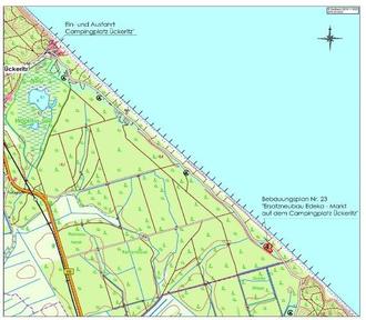Das Plangebiet wird im Norden durch die Straße Auf dem Campingplatz, im Osten und Westen durch Standplätze des Campingplatzes Ückeritz und im Süden durch den Landesküstenschutzdeich begrenzt. Im weiteren Umfeld ist das Plangebiet von alles Seiten durch Küstenschutzwald eingeschlossen.