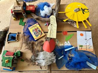 Am Freitag zog Museumsatmosphäre in die Schule ein. In den Klassenräumen präsentierten die Kinder ihre feiertagsspezifischen Werke. So entstanden Bilder auf Papier und Pizzateig, Mitmachpuzzle und -rätsel, Bauwerke, Collagen, bemalte Steine und ausdrucksvolle Standbilder. Zum Abschluss gab es ein liebevoll angerichtetes und sehr leckeres Mittagsgericht von der Familie Bobzin der Bauernstube Morgenitz. Mit dem Gottesdienst wurden die Projektwoche abgeschlossen und die Osterferien eingeläutet.
