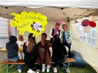 Die Kinderbetreuung an unserem Bastelstand übernahmen Sandra Pfahl und Angela Prella. Sie begeisterten die Kinder mit vielen Bastelideen rund um das Schaf.