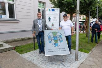 Eine Geburtstagsfeier ohne Überraschung? – Wo gibt´s denn so was? Nicht bei uns in Usedom. Die Firma Natursteinbau Manfred Gliesner überreichte dem Bürgermeister unserer Stadt Herrn Olaf Hagemann eine Tafel mit in Granit eingearbeiteten Stadtwappen.