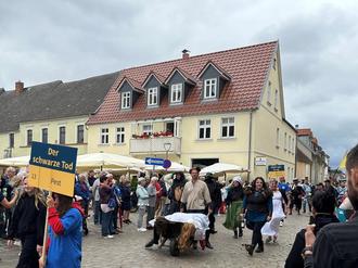Am Samstag, d. 22.06.2024 war es dann soweit. Mit Punkt 11.00 Uhr Glockenschlag der Sankt Marienkirche zu Usedom setzte sich der Festzug an der Wässering in der Karniner Straße in Bewegung.