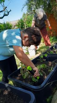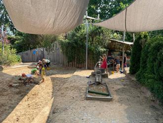 Nach der Gartenarbeit ging es für unsere Kinder endlich auf unseren schönen Matsch-Spielplatz, auf dem die Wasserpumpe dank der Temperaturen endlich wieder in Betrieb genommen werden konnte. Das Barfuß-laufen bereitet den Kindern im Sommer dort immer besonders viel Freude und fördert gleichzeitig die Sinne und Wahrnehmung von Bewegungen als auch das Erfahren und Erforschen der Umwelt. Das Matschburgen bauen geht bei so viel Spaß auch fast wie von selbst...
