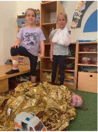 Besonders viel Freude hatten die Kinder, als sie die stabile Seitenlage ausprobieren konnten, sich gegenseitig Verbände angelegt haben und Pflaster kleben konnten.