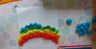 Mit dem Sommer sind wir nun im Regenbogenland angekommen. Die 7 Farben des Regenbogens kennen die Kinder schon genau, denn das gleichnamige Fingerspiel ist bei uns sehr beliebt und wird täglich gespielt. Mit verschiedenen Materialien haben wir einen Regenbogen gelegt, gemalt und geklebt. Durch Experimente mit Stiften, Farben und Wasser konnten Mischfarben und magische Gestalten entstehen. Aber buntes Wasser zaubern und damit Schüttespiele veranstalten, ist unser liebster Sommerspaß. Die Buddelmäuse lernen so ganz nebenbei mit ihren Kannen, Bechern, Tassen, Schüsseln, Kellen usw. einzugießen oder aufzufüllen. Beim Essen gibt es nun immer seltener eine Kleckerei. Auch in den Gärten des Dorfes konnten wir die Regenbogenfarben entdecken. Rote Kirschen durften wir naschen und so mancher frühe Augustapfel hat uns den Weg versüßt. Vielen Dank an alle Dorfbewohner für die leckeren Spenden aus ihren Gärten, auf unserem täglichen Weg durchs Dorf oder vor unserer Tür!